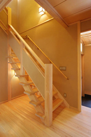 | No.16 | 木更津の家 | 檜無垢材を使ったストリップ階段。 |