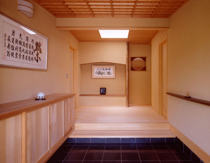 | No.5 | 浜松南の家 | 檜縁甲板張りのホールと杉柾下駄箱が清楚な和の空間を演出 |
