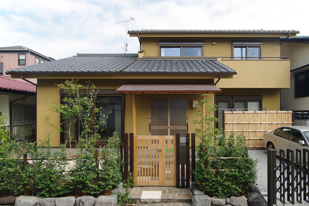 | No.49 | 広間の茶室のある家 | 端正な切妻瓦屋根の軒先が軽快ながら落ち着いた印象を与える佇まい。 |