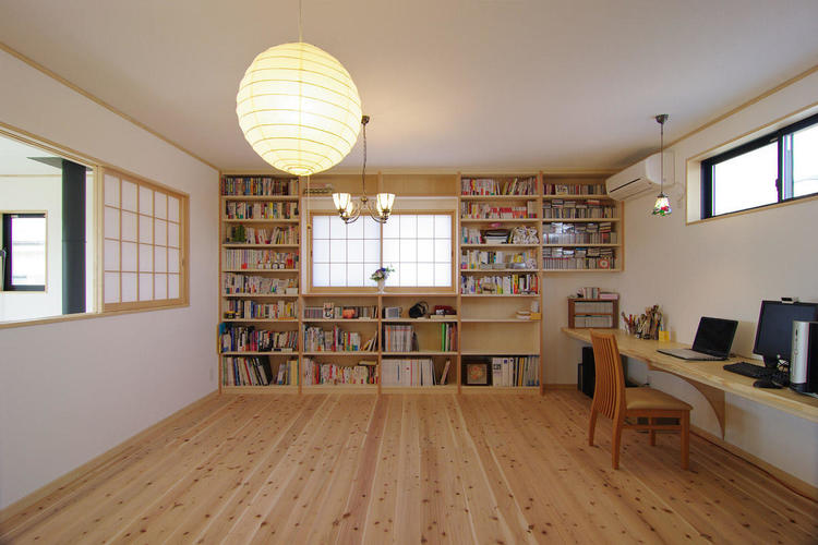リビングの吹き抜けが思いのほか良かったです。2階の勉強室と呼んでいる多目的室が、吹き抜けからリビングを見下ろせる位置にあるのですが、冬はリビングと同じ暖かさで過ごしやすい場所です。吹き抜けに面した明り障子を閉めておけば、落ち着いた個室にかわります。ジャズが好きで、休日はこの部屋のオーディオでCDを再生して聞いていますが、吹き抜けを通してリビングにも程よく聞こえるBGMになります。この絶妙な一体感は我が家ならではの特徴ですね。